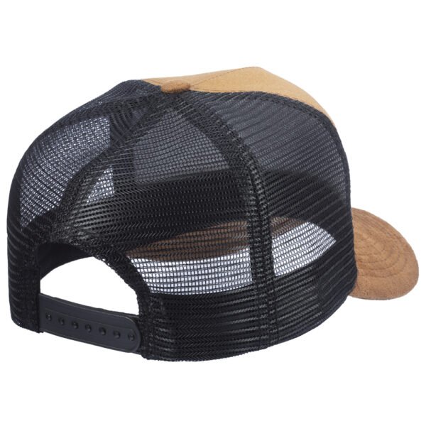 Boné modelo Trucker, confeccionado em tecido Sarja 100% Poliéster e frente dublada com entretela de memória.
