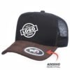 Boné modelo Trucker, confeccionado em tecido Sarja 100% Poliéster e frente dublada com entretela de memória.
