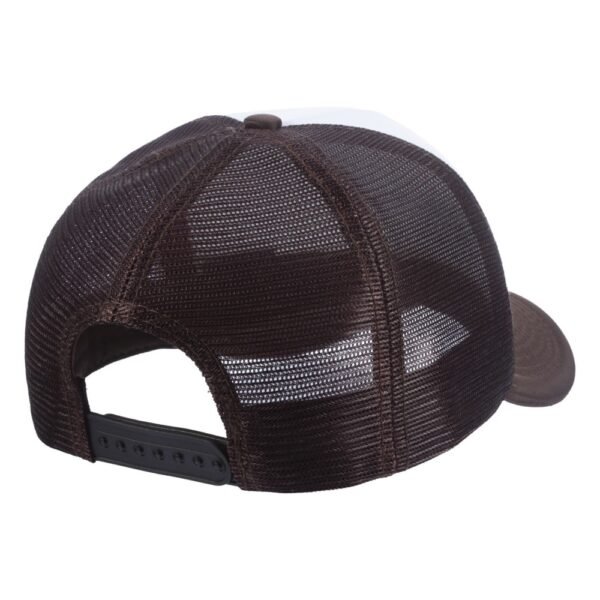Boné modelo trucker liso, com frente e aba em tecido 100% Poliéster dublado com espuma de alta densidade.