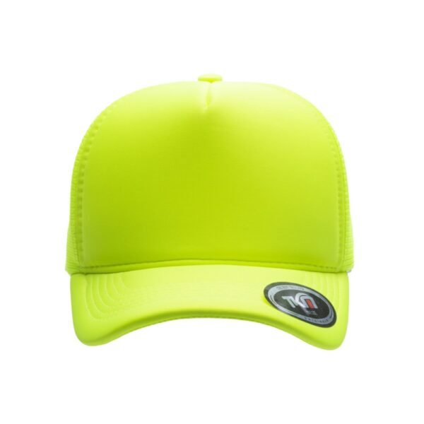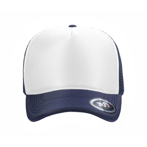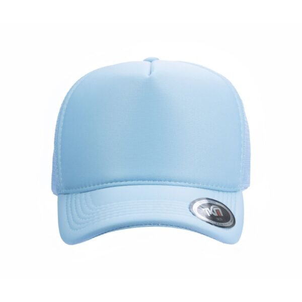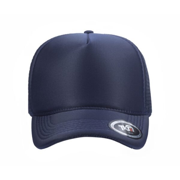 Boné modelo trucker liso, com frente e aba em tecido 100% Poliéster dublado com espuma de alta densidade.