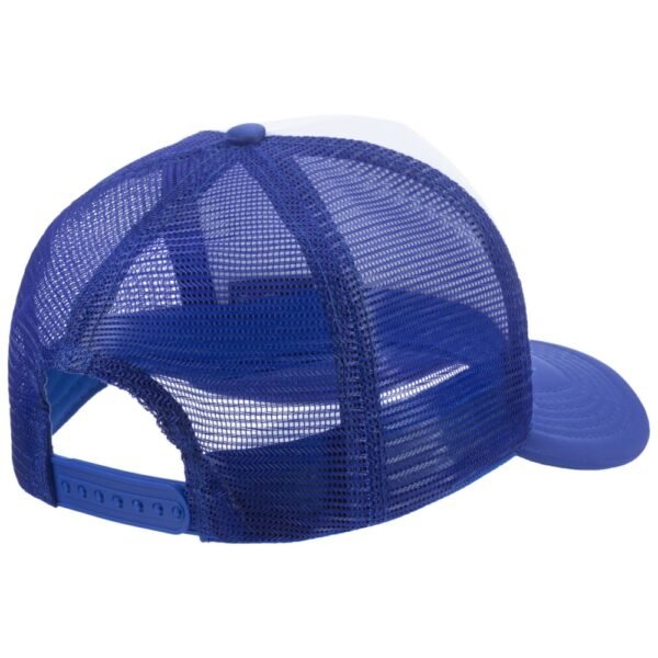 Boné modelo trucker liso, com frente e aba em tecido 100% Poliéster dublado com espuma de alta densidade.
