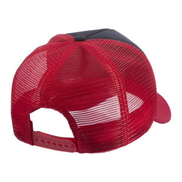 Boné modelo trucker liso, com frente e aba em tecido 100% Poliéster dublado com espuma de alta densidade.